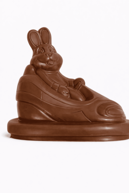 Este simpático Conejo en coche de choque es una figura de aprox. 200g de chocolate suave Premiere. Moldeada y envuelta a mano.