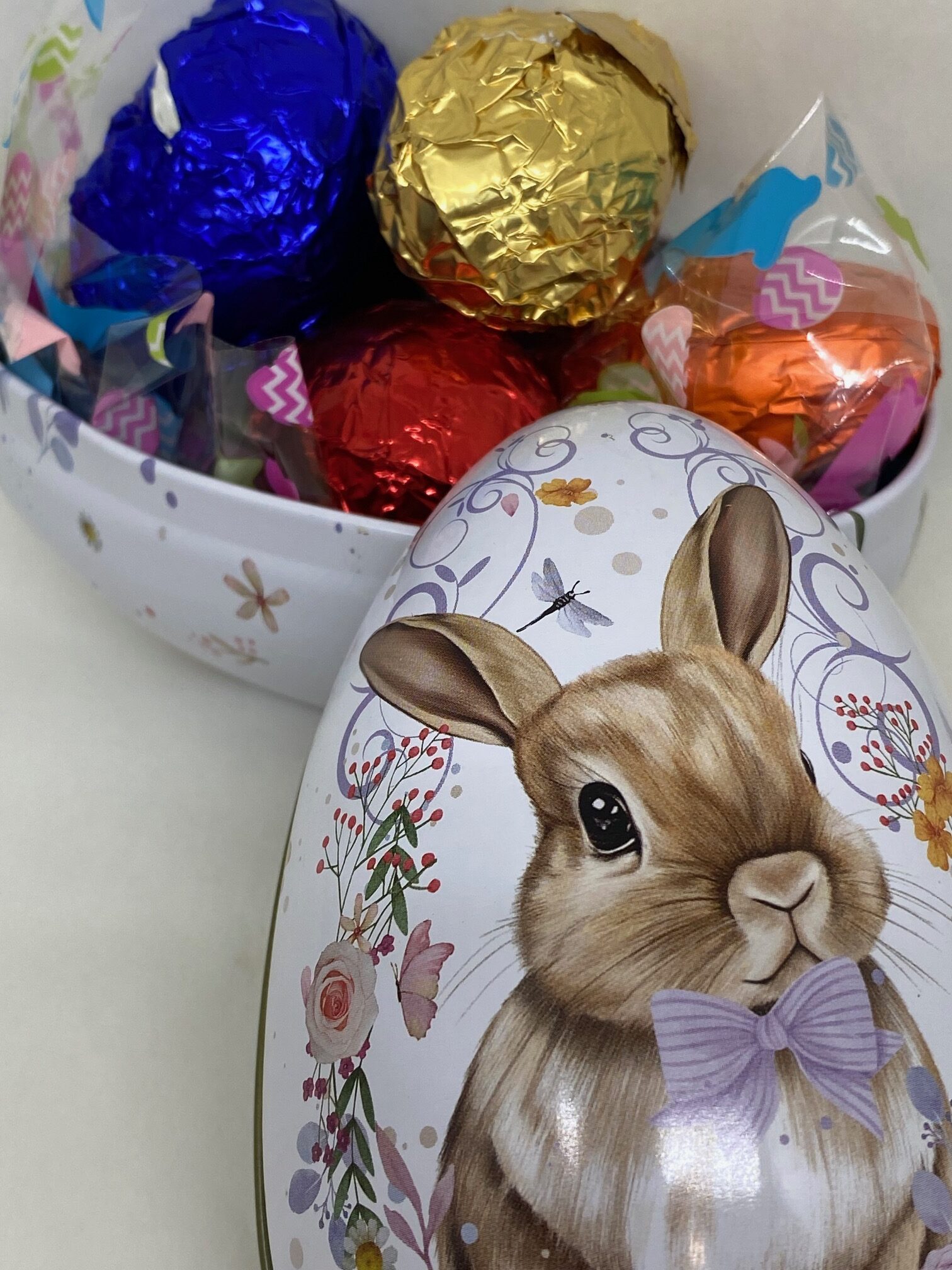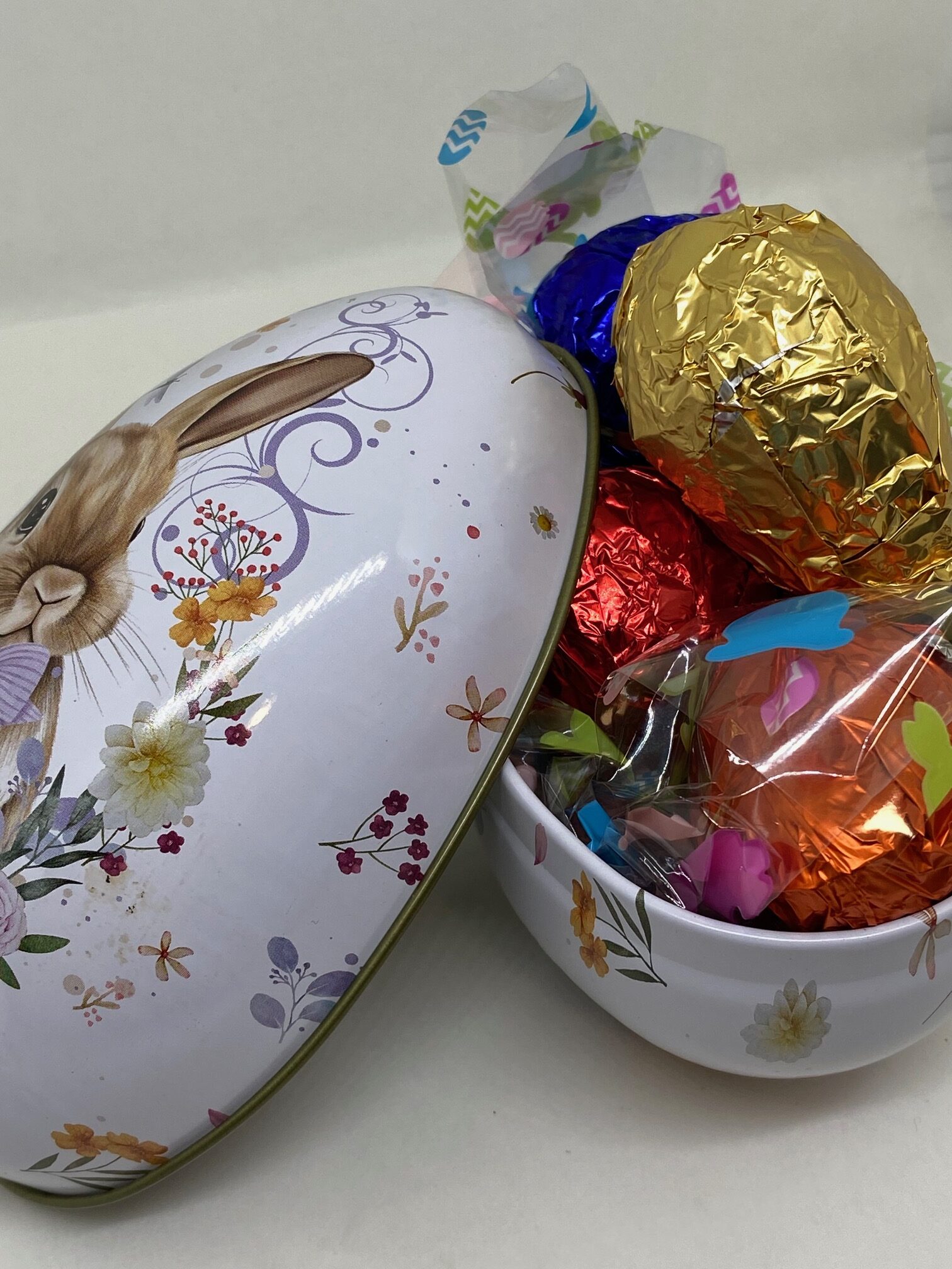 Pequeña Lata Huevo de Pascua de chocolate suave «Premiere». Cada Lata contiene 4 huevos de pascua, todos envuelto en aluminio de color.